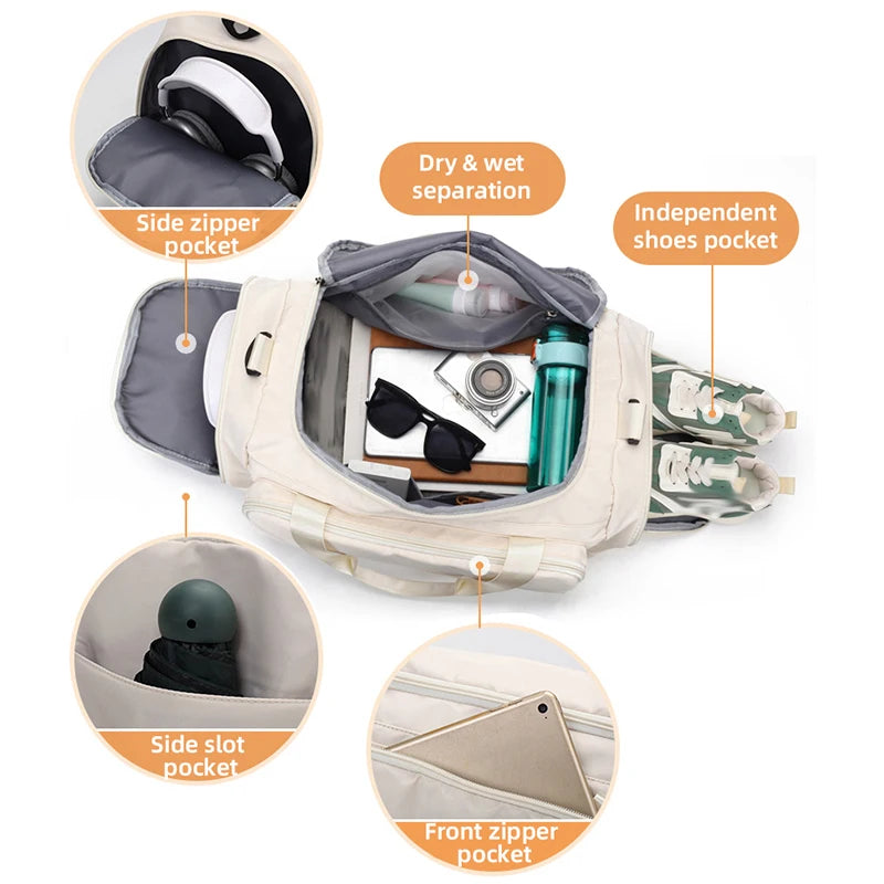 Fitness Gym Bag with Shoes Pocket Yoga Sports Outdoor Travel Business Trip Handbag Dry Wet Short Distance Luggage Shoulder Bags
