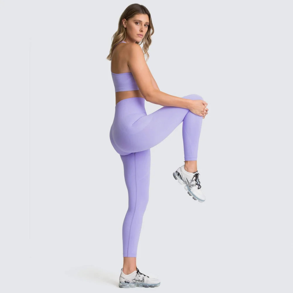 Women's Seamless Yoga Set Fitness Crop Top & Tummy Control High Waist Leggings with Built-in Bra Workout for Pilates Gym Running